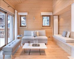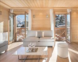 The spacious lounge, with its wood-burning fireplace, creates a cosy atmosphere in which to relax after skiing. The lounge, which opens onto the spacious, fully-equipped kitchen, offers a convivial, functional space where you can share good family meals.