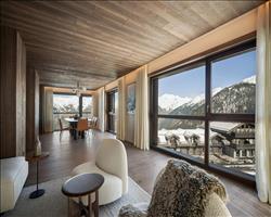Within its wood and glass facades, the residence offers spacious accommodation with a timelessly elegant design that marries traditional chalet architecture and the latest alpine design trends .