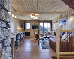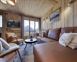 This beautiful 87sqm apartment is arranged in duplex to sleep 6 people. It offers 2 bedrooms (one double and one twin), each with a private bathroom and shower room as well as a sofa bed for 2 people in the living room. The living room includes a lounge with a fireplace, a kitchen and a dining area opening onto a south-east facing balcony.