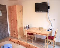"Bogatin", 3-room apartment 51 m2 on 1st floor. Simple furnishings: living/dining room with satellite TV (flat screen). Exit to the balcony. 1 room with 1 double bed. 1 room with 1 double bed. Kitchen-/living room (4 hot plates, oven) with dining table. Shower/WC. Electric heating, oil heating. Balcony 10 m2. View of the mountains and the countryside. Facilities: Internet (WiFi). 1 pet/ dog allowed.
