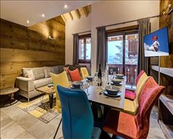 Right in the centre of Meribel, access to the chalet is via an excalator next to the Tourist Office. There is a short walk across the piste to get to the chalet, in the morning you can put your skis on and ski direct into La Chaudanne, the main lift area. In the evenings, you may not want to leave the comfort of the chalet with it's roaring fire and spectacular view, however if you do, it is very convenient for a quick taste of Meribel's bars and restaurants. The idyllic, ski in ski out location is going to be popular with keen skiers and families wishing for a really magical experience and a holiday not to be forgotten.