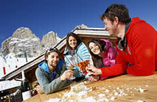 As one of the smaller resorts in the Val di Fassa there’s a laid-back après scene here with evening activities focussed around hotel accommodation and cosy bars and restaurants. Indulge your taste buds at La Regolina - this friendly restaurant offers some of the best local cuisine and La Soldanella is another top spot for traditional Italian meals. There are a number of casual eateries around- Pizzeria Winkler is our favourite with arguably the best pizza in the area. The El Zirm wine bar has a cosy ambie...
