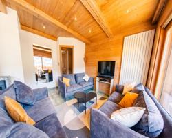 The chalet offers 1 twin and 2 double bedrooms, all of which have en-suite facilities. The bright open-plan living and dining area provides plenty of space to unwind, with cosy seating and a warm, welcoming feel throughout, and open out onto a wrap-around balcony which looks out towards the piste.