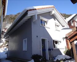 "Hildegarde", 4-room chalet 84 m2 on 2 levels. Simple furnishings: living/dining room with cable TV, radio, CD-player and DVD. Exit to the balcony. Kitchen (3 hot plates, oven, raclette grill fondue Set (cheese)). Sep. WC. On the lower ground floor: 1 room with 1 french bed (140 cm). 1 room with 1 x 2 bunk beds. 1 room with 2 beds. Bath/WC. Balcony, terrace. Terrace furniture, box-room. Beautiful view of the mountains and the valley. Facilities: washing machine. Internet (WiFi, free). At 100 m. Please note: non-smokers only, parking space for small car only.