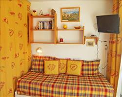 2-room apartment 34 m2 on 1st floor. Living/dining room with 1 pull-out bed (2 pers. 2 x 80 cm), TV (flat screen). Exit to the balcony. 1 room with 1 french bed (140 cm). Sleeping alcove with 1 x 2 bunk beds (70 cm). Kitchenette (2 hot plates, mini-oven, microwave, electric coffee machine). Bath/WC. Electric heating. Balcony, south facing position. Very beautiful view of the mountains and the ski run. Building C3, directly on the ski runs.