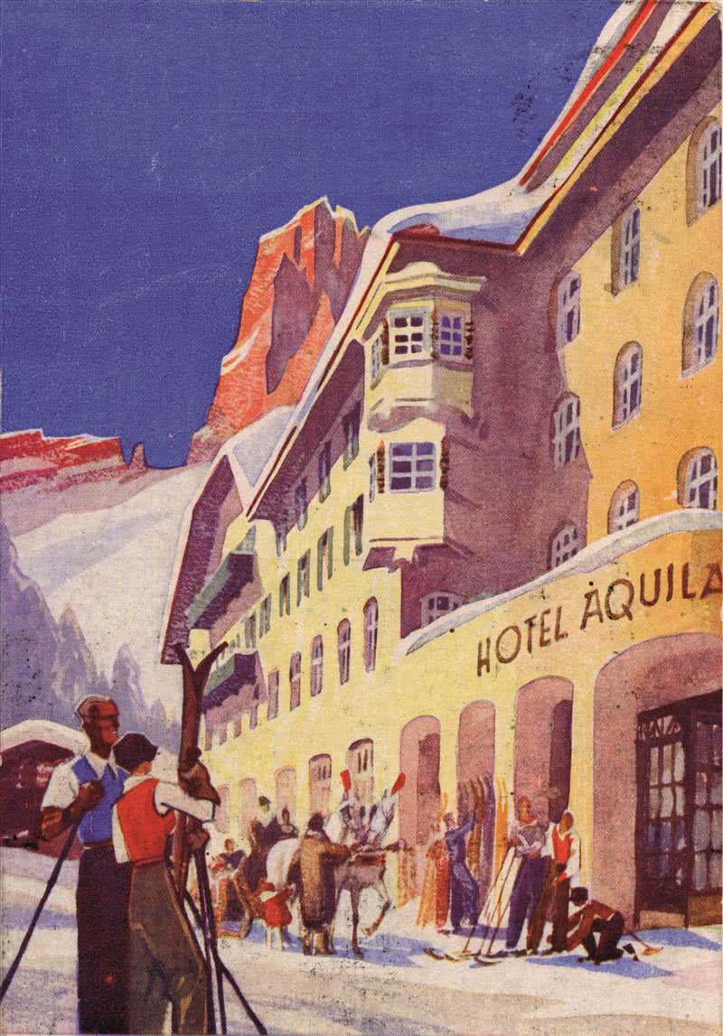The sixth and seventh generations of Sanoners – brothers Andreas and Klaus and their families – now run the Adler. Their parents, Pepi and Elly, had installed the first spa in the Dolomites, and the hotel has now become a ‘spa and sport resort’, featuring the biggest pool and saunascape in the region, a health food restaurant and an extensive wellness programme. One in a long line of great Sanoner matriarchs, Elly’s still a strong presence in the Dolomiti – she has some wonderful tales of the Adler through the ages and her paintings can be found throughout.